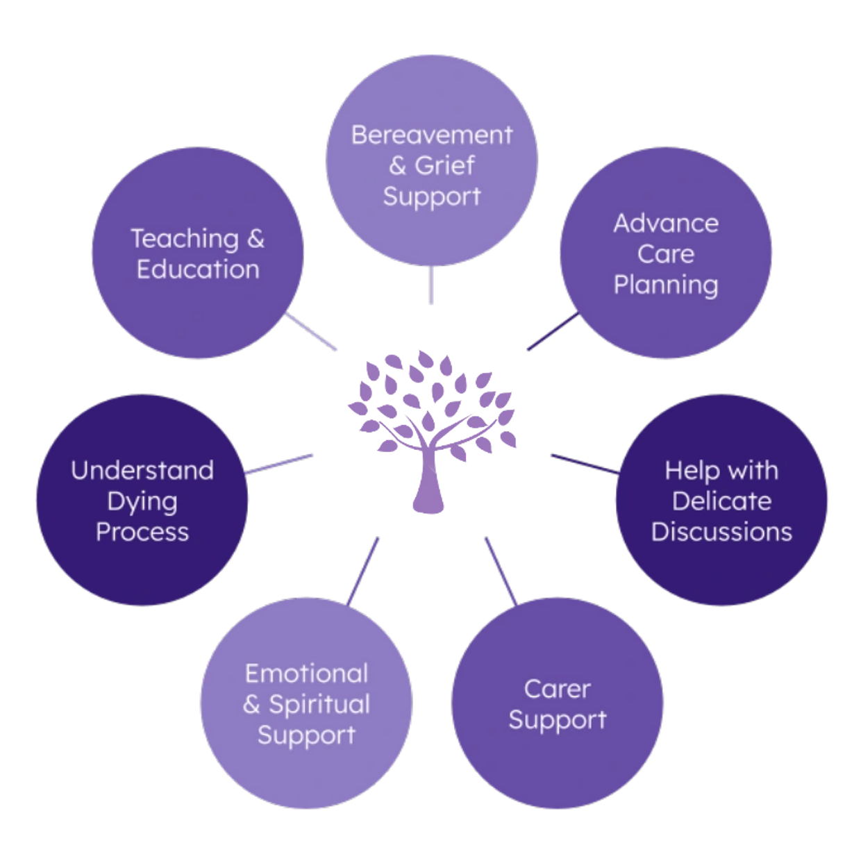 An End Of Life Doula (also known as a Death Doula) is a compassionate and supportive presence who assists individuals and those who are important to them in navigating the dying process.